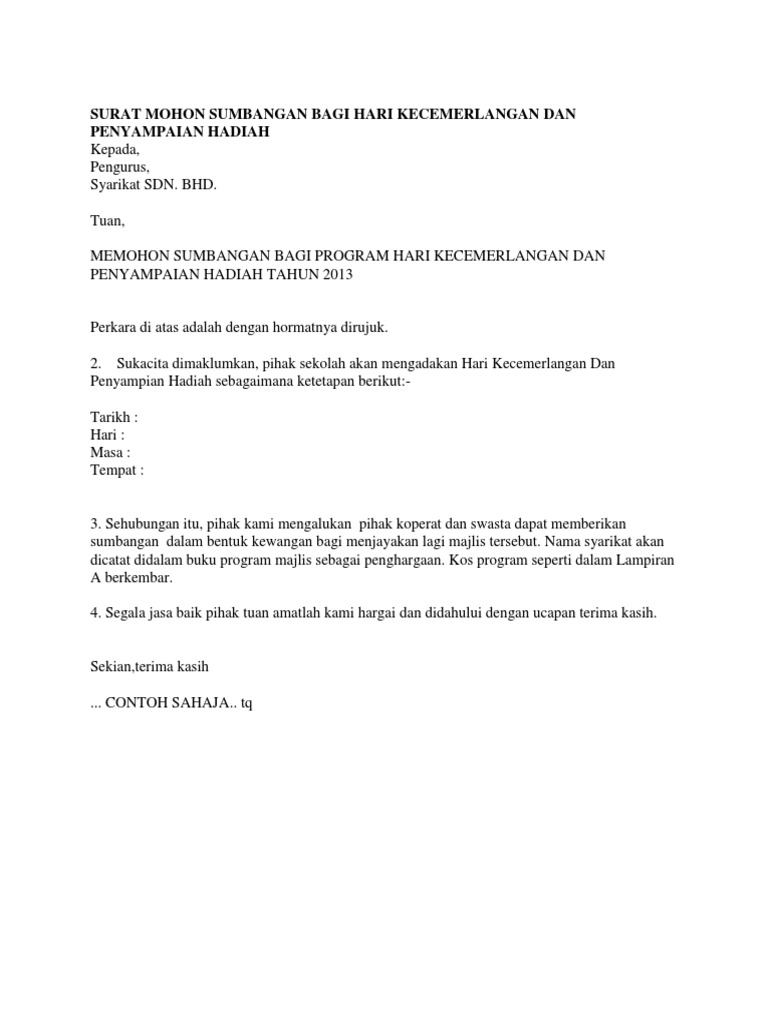 Surat Mohon Sumbangan Bagi Hari Kecemerlangan Dan Penyampaian Hadiah Pdf